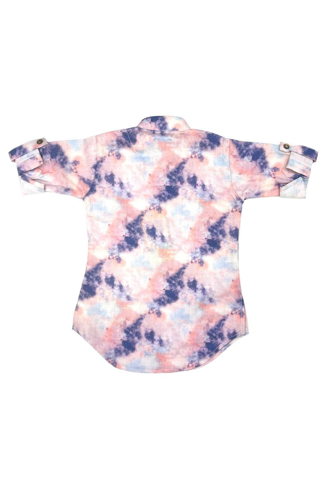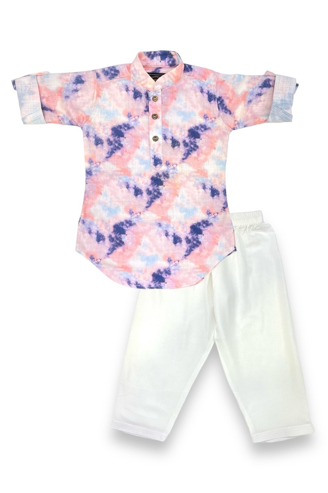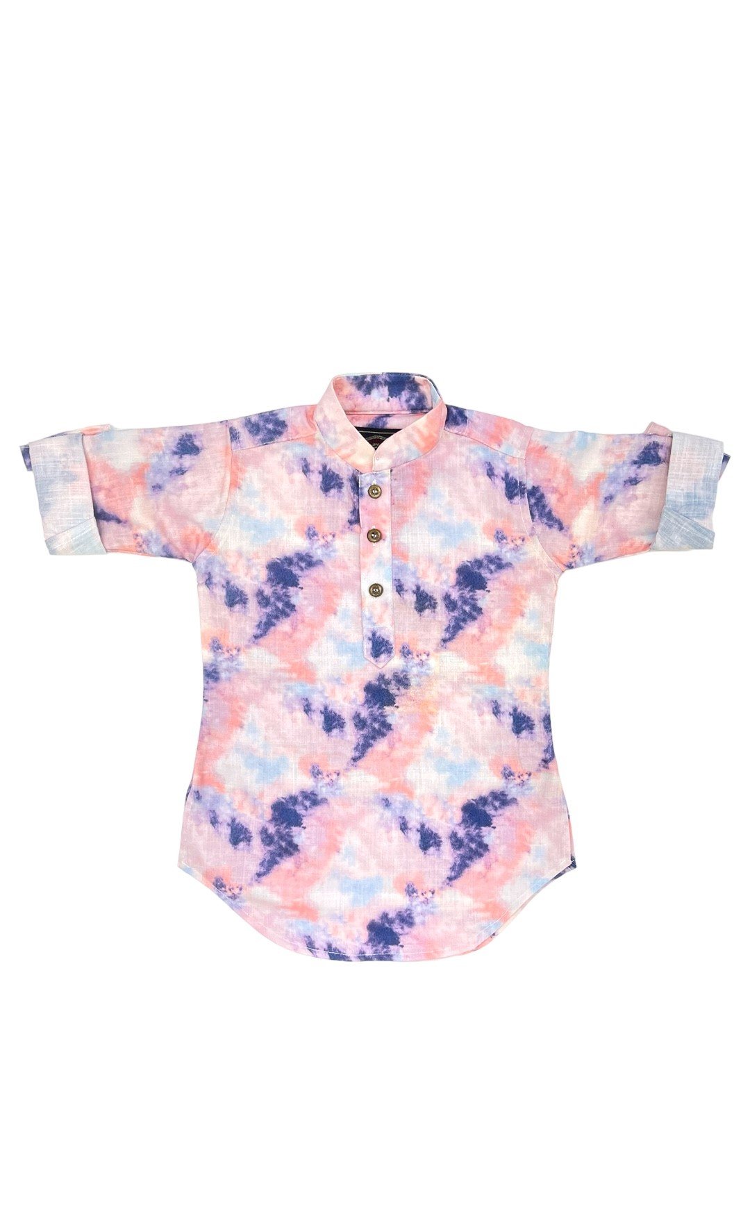 - Kurta with tie and dye effect in blue purple pink color’s on it.