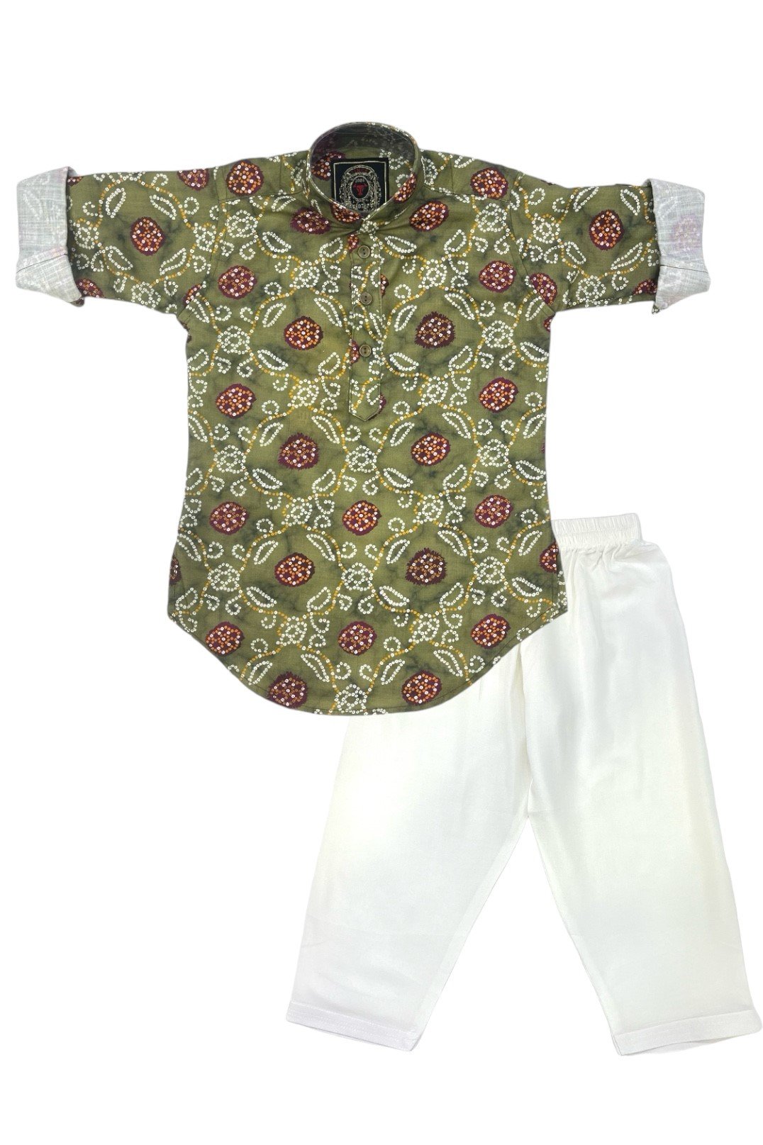 - Traditional Bandhani Printed Green kurta and Off White Pajama