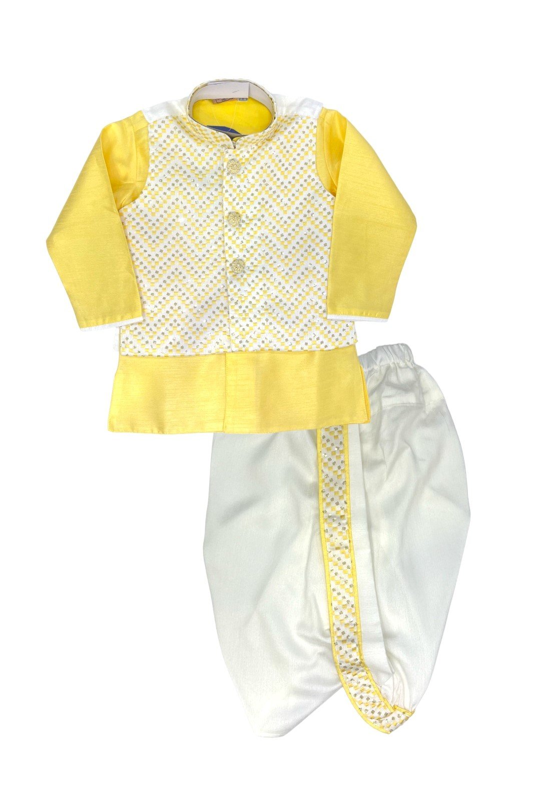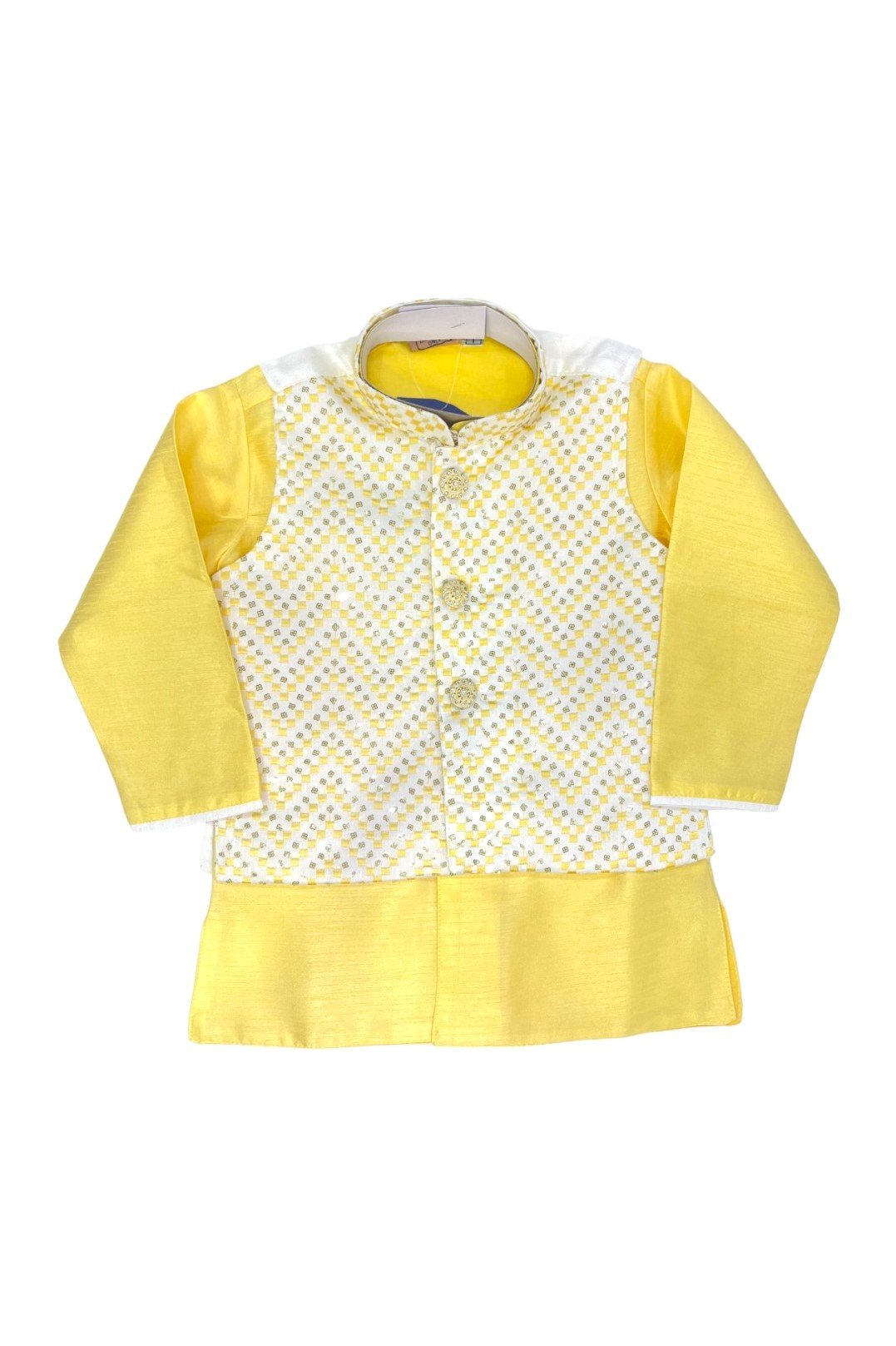 Order : White Jacket Yellow Kurta Combo Set