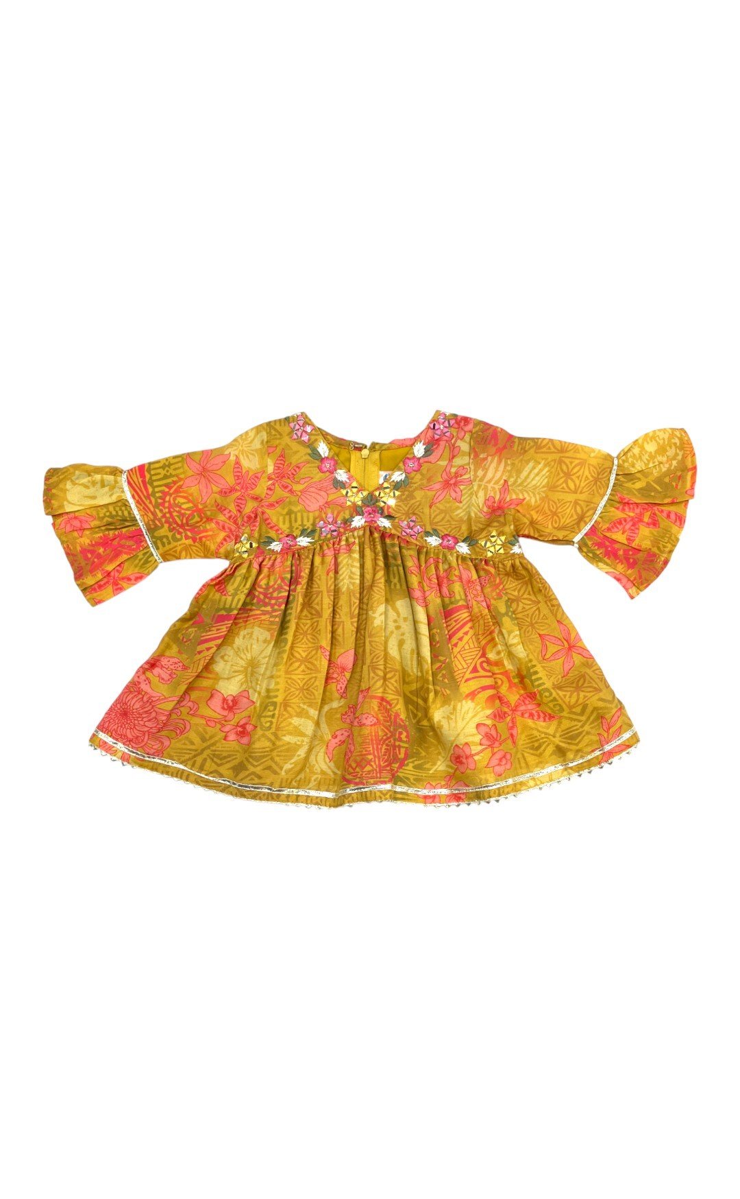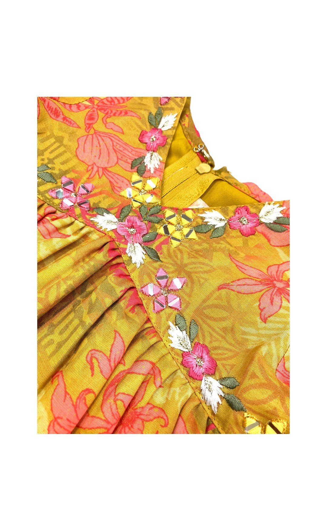 • 3/4th Sleeves with gota pati lace work, Peplum top, with thread and mirror work on the neck line.