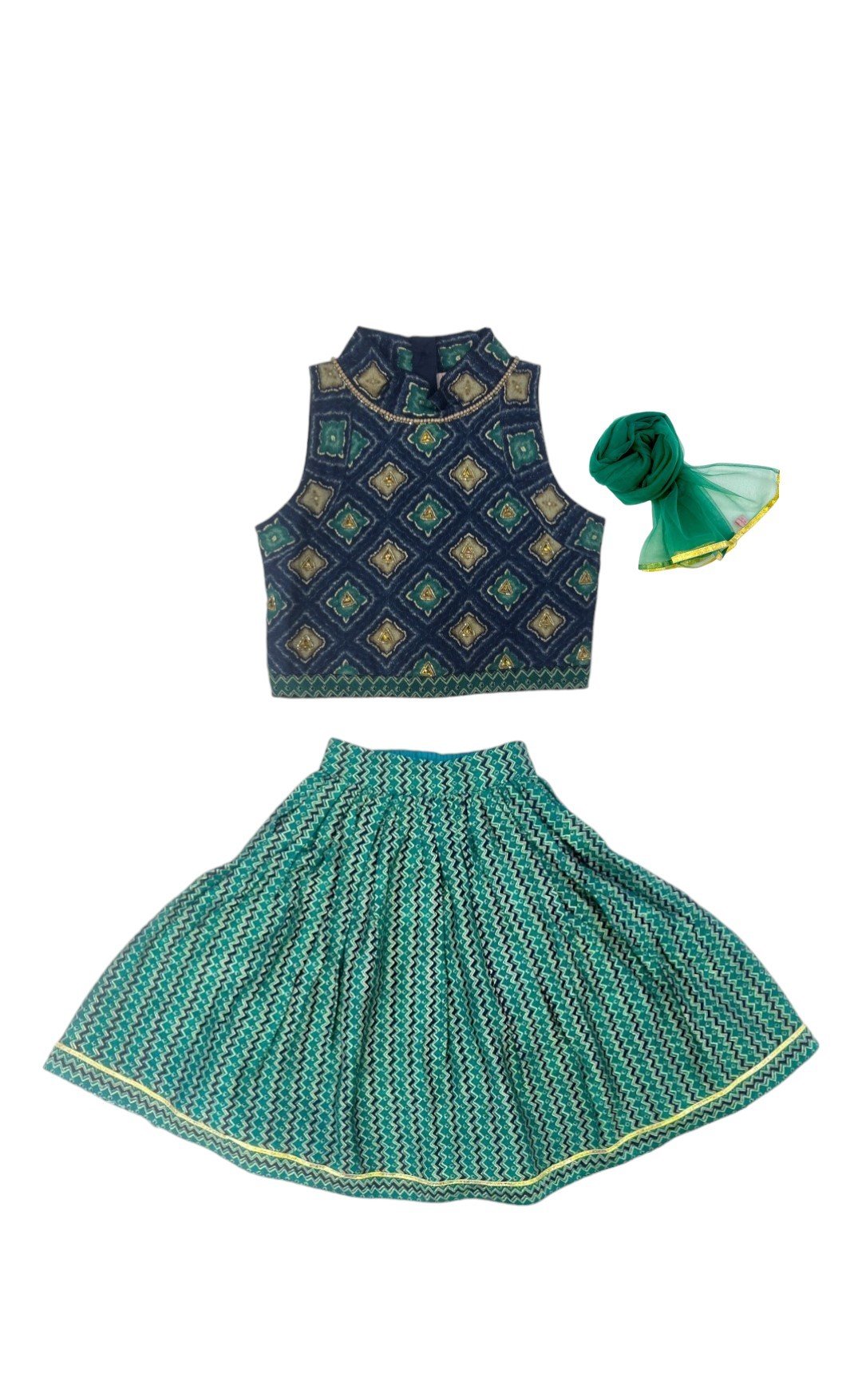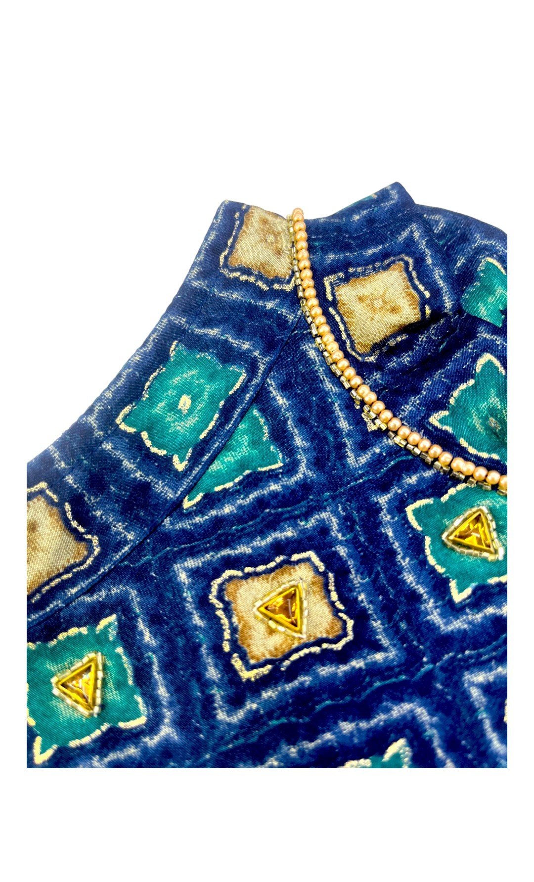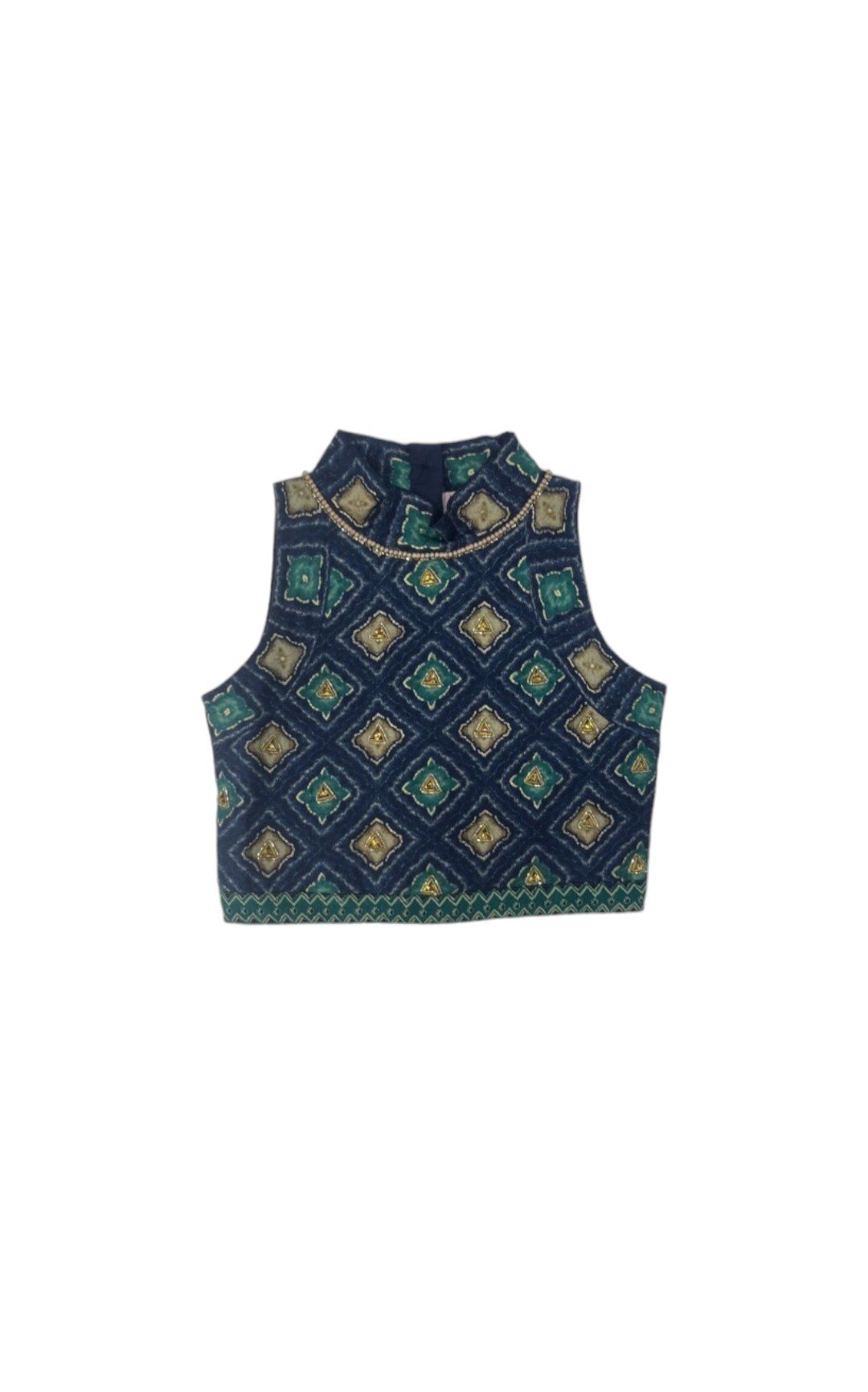 • Sleevless Top with high neck and  Mirror and bead work near the neck line