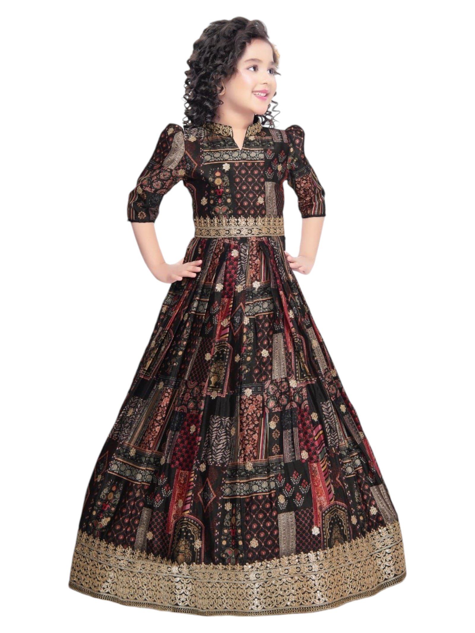 - Indian Authentic Black Coloured silk gown with all over print.