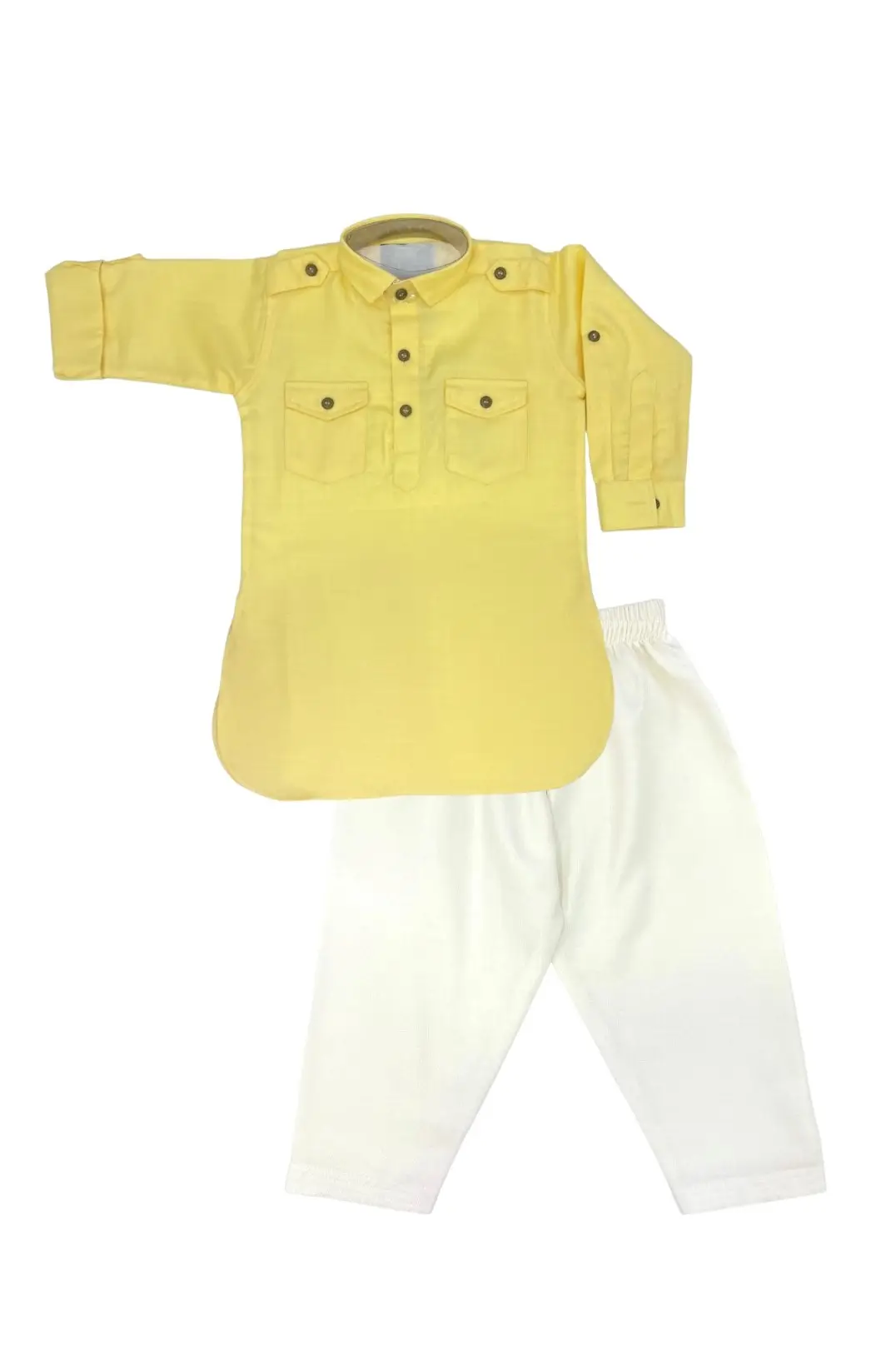 - Lemon Pathani kurta with collar and front open button panel.